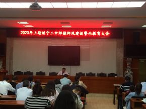 2023年5月25日晚上,湖南省绥宁县第二中学在办公楼五楼会议室召开“师德师风建设”警示教育大会,会议由党总支书记、校长肖飞跃主持。