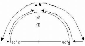 ――“大气环流”教学偶得 在数学中,遇到从正面难以直接得出结论的证明题,常用反证法的方法。受其启发,我把此法运用到地理教学中,对突破教学中的难点、落实重点大有裨益。 高中地理教材,大气运动中的“大气环流” 内容,对高一的学生来说,既是重点,也是难点。因为大气环流不仅是各种规模运动系统的形成和活动的基础,而且是各地天气变化、气候形成和演变的重要条件。了解和掌握大气环流的形成不仅要有较强的空间想象力。而且要有一定的生活经验及地理科以外的知识经验。直接讲解学生难以接受,事倍功半。我在教学这部份内容时,运用了“反证法”原理,结果效果大不一样,起到了事半功倍的效果。 大气运动受地球自转、太阳直射点南北移动、地面性质等多种因素的影响,从而形成复杂的大气环流系统。我在教学这部份内容时,采取排除假设的反证原理进行讲解,思路是先假设①地球不自转;②太阳只直射赤道;③地面性质均匀。然后通过一步一步的否定假设而得出结论。过程如下: 第一步:提出三个假设:①地球不自转;②太阳只直射赤道;③地面性质均匀 如果以上三个假设成立,那么通过分析得出如下结论:由于地球表面是球面,平行的太阳光线(太阳的体积是地球的130万倍,我们认为太阳光线是平行的)照在地球表面,赤道地区得到的太阳辐射最多,大气受热膨胀上升,两极地区得到的太阳辐射最少,大气冷却收缩下沉,就形成了南北半球各一个热力环流。如图所示: 这样,地球上总是只吹一种方向的风,北半球上空吹南风,近地面吹北风,南北半球相反。 第二步,排除假设 1、 排除第一个假设: 从所周知,实际上地球在不停的自转,水平运动的大气受到地转偏向力的影响,方向发生偏转,其规律是北半球向右偏,南半球向左偏,从而使这种南北半球各一圈的热力环流演变为南北半球各三圈的三圈环流,同时在地球表面形成七个气压带和六个风带,其形成过程和分布规律如右图: