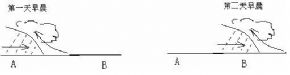 3、图解式 某些地理事物的特征及其在地域上的分布,用文字说明比较繁锁,也难以讲清,如果配以柏板图,教师边画边讲,简易明了,学生容易理解和掌握。如讲授锋面雨的移动,可配合下图讲解: