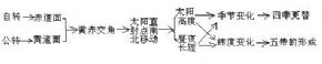 4、因果信息式 因果信息式用于地理事物间的因果关系,教师在课堂上把地理事物的因与果通过箭头,使它们产生相应的联系。线索明了,简明扼要。如讲授“地球公转的意义”时,可作如下板书: