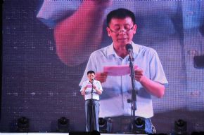 本网讯 9月15日晚上,绥宁二中在简易足球场隆重举办庆国庆迎新文艺汇演。武阳镇党委政府、武阳派出所、绥宁农商行武阳支行、绥宁农业银行武阳支行等单位的领导和工作人员和全校3000多师生观看了此次演出。 足球场内人如潮涌,气氛热烈,大气磅礴的场面感染了在场的每个观众。首先是该校负责人发表了热情洋溢的讲话,感谢各级领导对二中的支持和关心,介绍了二中在过去一年中的发展变化和在各级考试中取得的成绩,高度赞扬了二中师生在教与学中发扬的“苦教、苦学”精神。然后文艺汇演在激情澎湃的《我和我的祖国》小合唱中拉开了帷幕。整个演出有少数民族舞蹈、现代舞、朗诵、民歌演唱、流行演唱、民乐合奏等共18个节目,给观众印象最深的是蒙族舞和傣族舞、高二传媒生的朗诵《中华少年》、民乐合奏《梦里水乡》、民歌演唱《我的祖国》。少数民族舞蹈表现出的异域风情让观众陶醉;《中华少年》的朗诵激发了在场的每名少年作为中华少年的强烈的自豪感;《梦里水乡》美好悠扬、婉转动人;《我的祖国》真挚动人,极富表现力和感染力,激起了在场观众的强烈共鸣。 此次汇演不仅表达了全体师生对伟大祖国的美好祝福和爱国情怀,也充分展示了我校的素质教育、校校合作成果和全体师生良好的精神风貌。