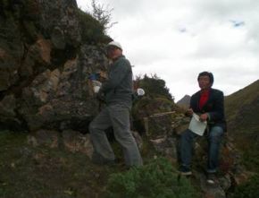 2007年8月份,周口店实习结束后,我再次踏上了前往西藏的征程。刚开始是向老师带领我们骑马在山南地区找金矿(图6)。我们准备了帐篷等户外用品,准备在河边搭帐篷过夜。但是山上的喇嘛不允许我们支帐篷。无奈,我们只好住进藏族老乡家里。这个村里的人,没有一个会讲汉语的,好在我们请了一位翻译,名字叫巴桑。由于我怕冷,年近五旬的向老师把房间让给我睡,他老人家自己睡在房间外的凉床上。每每回忆起这一幕,我的内心总是暖流涌动。